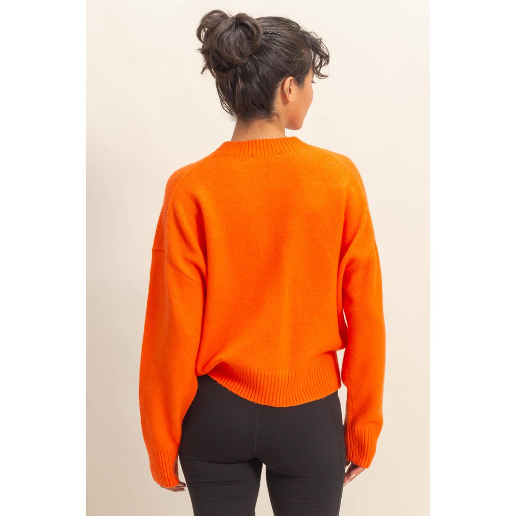 Red/Orange Designed for versatility and comfort, this sweater has a relaxed silhouette that's ideal for a cozy yet sophisticated look. The ribbed crew neck, cuffs, and hem add a subtle tailored feel, creating a structured yet relaxed vibe. Layer it over a collared shirt or pair it with denim for a smart casual look. Model Is 5' 7" Tall, 32" Chest, 25" Waist, 36" Hips And Wearing A Size Small Imported. Designed In The USA