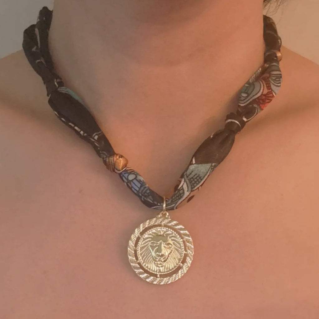 Wrap yourself in elegance with the Luxe Print Medallion Pendant Scarf Necklace. This stylish fusion of a chic printed scarf and a bold medallion pendant delivers effortless sophistication, whether you're dressing up for an evening out or adding flair to your everyday look.