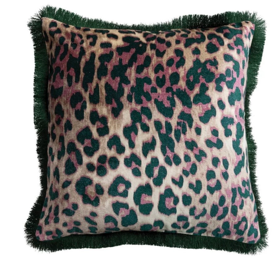 Velvet Leopard Fringe Pillow